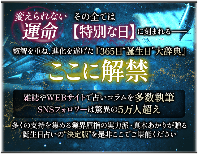 決定版【全運命録◆誕生日で現実解明】365誕生日大辞典|真木あかり