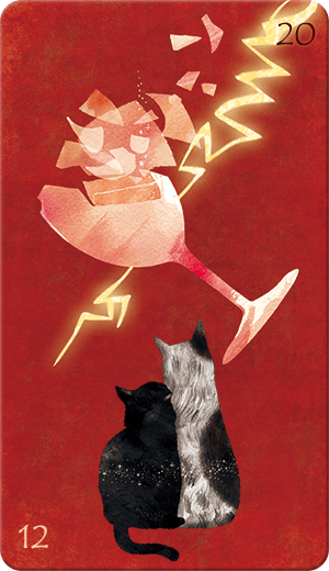 なぜなら、あなたが受け取る恩恵を示しているカードには「砕け散るグラスの衝撃にまったく動じることなく、身を寄せ合っている猫のカップル」が描かれているんですね。
