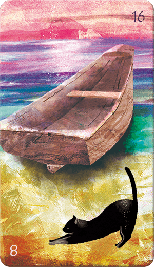 なぜなら、あなたが受け取る恩恵を表すカードには「ここを離れるためにボートに乗り込み、大海に漕ぎ出そうと入念な準備をしてきた猫」が描かれているからです。