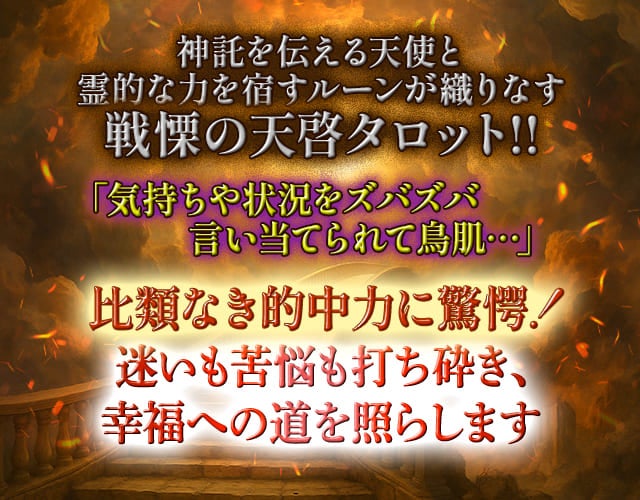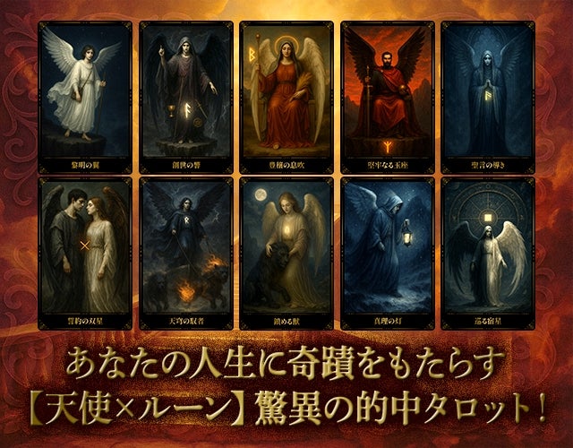 『エンジェリック・ルーンタロット』は、神託を伝える「天使」をモチーフにしたカードに、神々のパワーを宿した神秘文字「ルーン」を刻み込み、的中力を極限まで高めたタロットです。